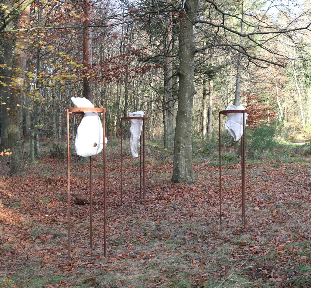 In the exhibited work, conditions, the transformation that the piece will undergo, while installed exposed to the elements, in the park surrounding Kirsten Kjær’s Museum, is envisioned as part of the narrative about the transformation that occur, while we live our lives.